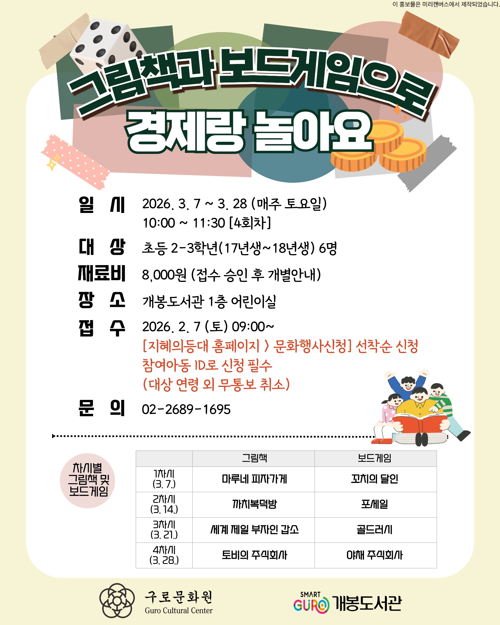 [서울] [개봉] 2026년 특성화 프로그램 <그림책과 보드게임으로 경제랑 놀아요>2026.02.06